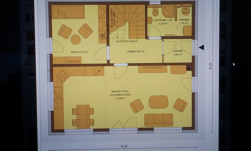 | Obyvací pokoj+kuchyňský kout | 33,48 m2 |